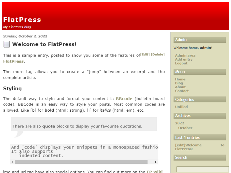 FlatPress je velmi přizpůsobitelný a podporuje pluginy pro rozšíření jeho výkonu. BBCode je jeden z pluginů.